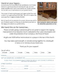Visit our Grotto at Prince of Peace Parish-Assumption of the BVM Church. Pray to our Blessed  Mother for peace in our country and the world and ask her assistance to bring friends and families who are not practicing their faith to return to her Son, Our Lord Jesus.